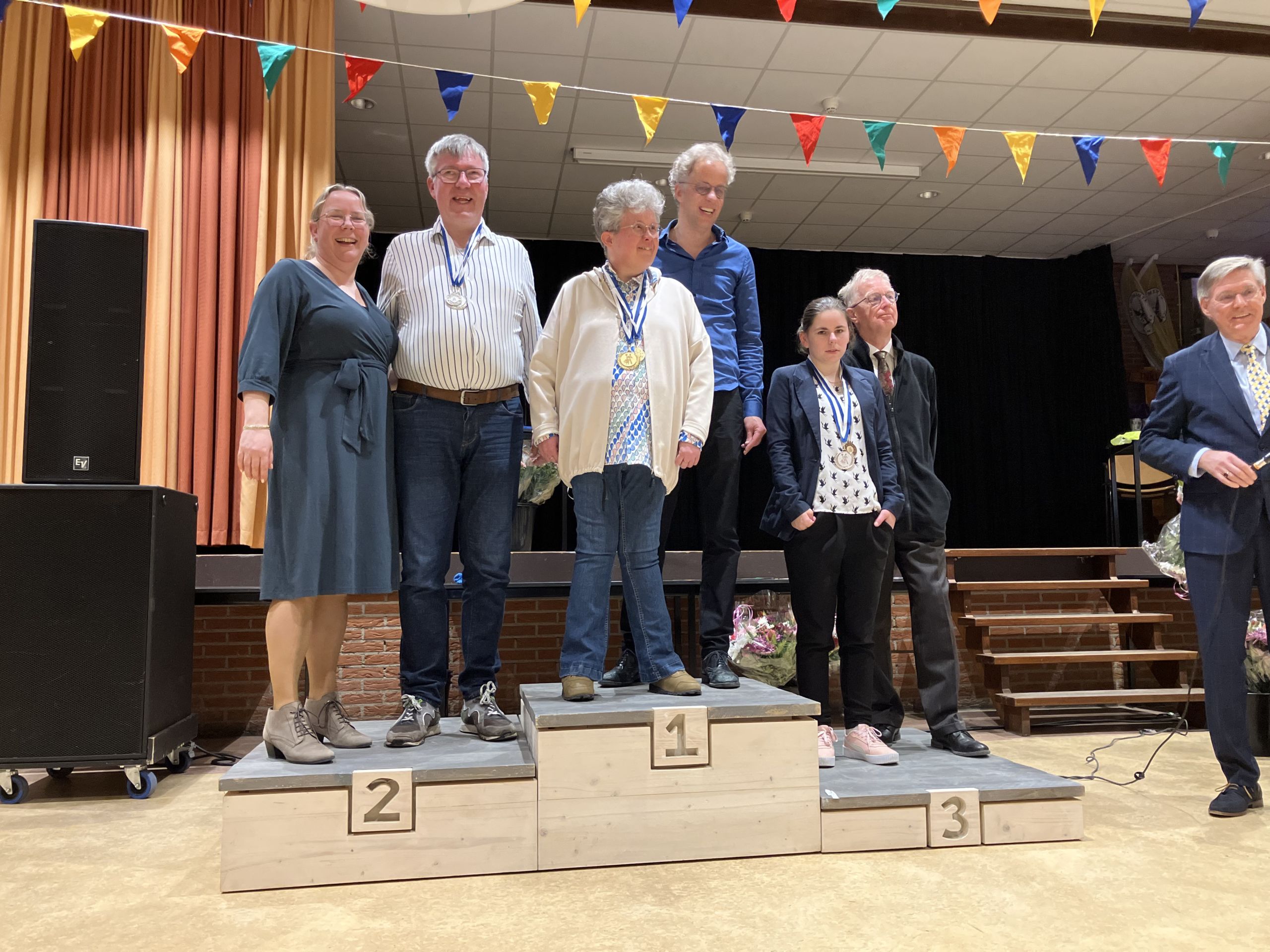 Aan het einde van de dag vond de prijsuitreiking plaats. Harm Wolters en oud-voorzitter Teun Bouwhuis reikten de medailles uit aan de trotse deelnemers. Al met al was het weer een groot succes!